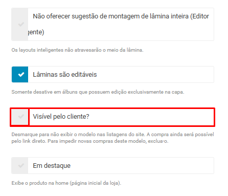 Saiba mais sobre a criação de modelo e tamanhos de álbuns aqui