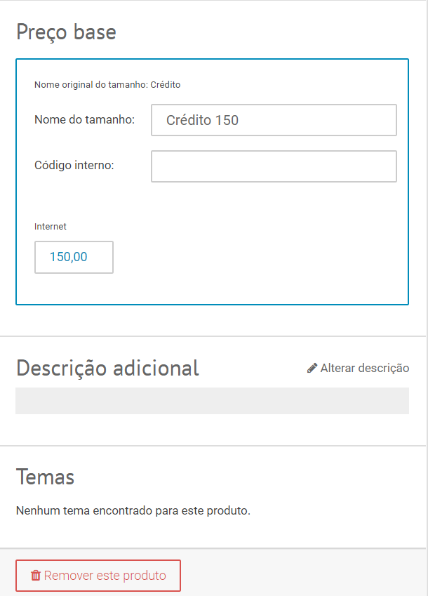 - Para o nome do produto, sugerimos algo como "Crédito 150", caso o valor seja R$150,00; Procure ser sucinto e breve na escolha do nome do produto;