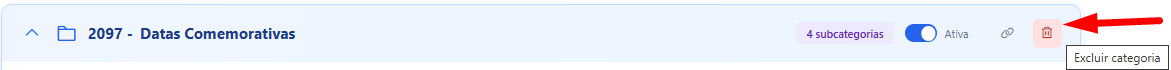 Excluir categoria | Lixeira no cabeçalho da categoria |