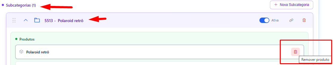⚠️ O produto não é excluído da loja, apenas removido daquela categoria.