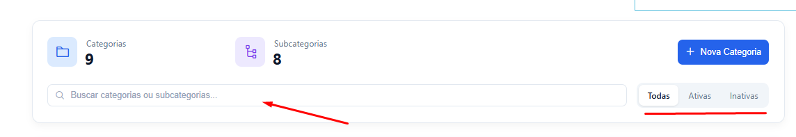 Buscar e filtrar categorias