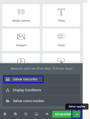 Caso queira continuar a edição mais tarde, e salvar suas alterações, clique na seta à direita do botão principal e escolha a opção "Salvar Rascunho".