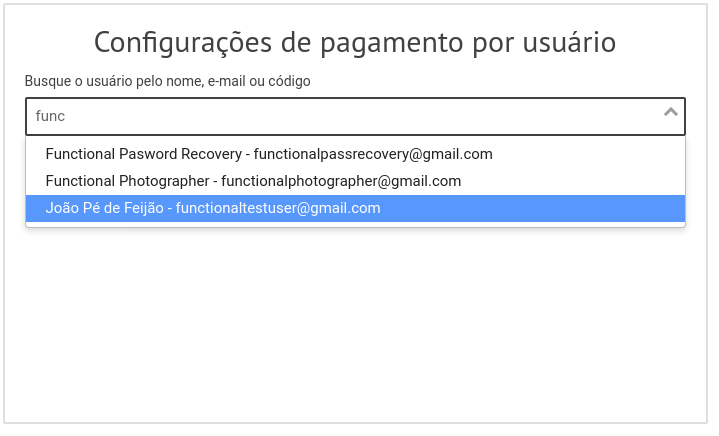 2. Ao abrir a tela, aguarde o carregamento e procure o quadro com o título Configurações de pagamento por usuário