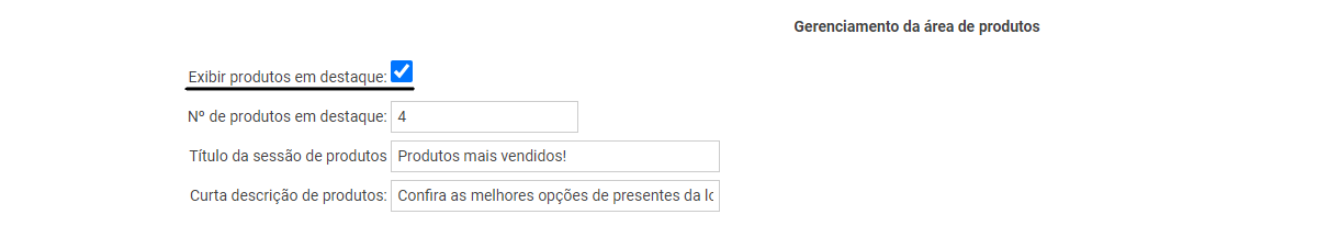 Acesse Empresa > Preferências, localize o botão Exibir produtos em destaque e tenha certeza que ele está selecionado. Selecione a quantidade de modelos que deseja exibir na linha abaixo, Nº de produtos em destaque.