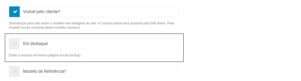 Ter itens em destaque na Home de seu site permite que seu cliente possa acessá-lo imediatamente, além de ser uma excelente vitrine para você mostrar seus melhores produtos!