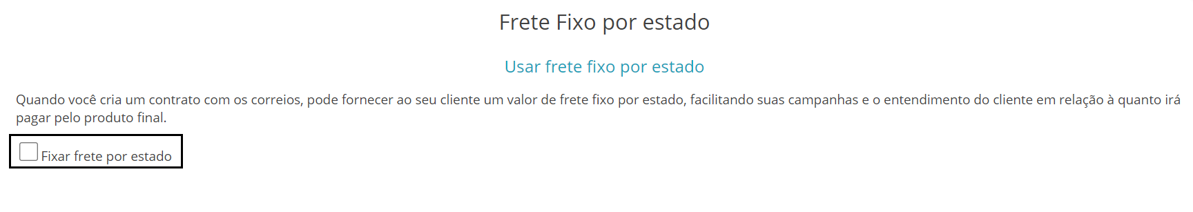 Disponibilizamos em nossa plataforma uma ferramenta que possibilita cadastrar um valor de frete “fixo” para cada Estado.