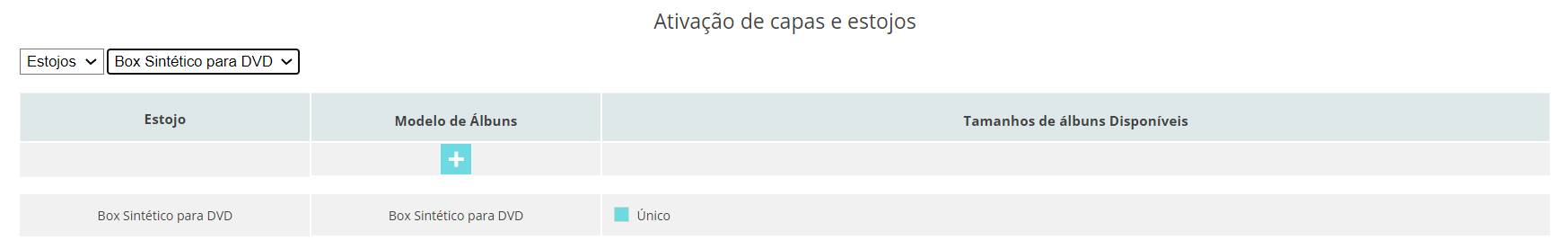 Para isso, na tela Módulos > Fotolivros > Gerenciar Modelos e Tamanhos