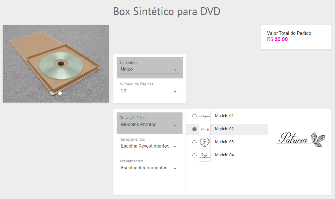 Primeiramente precisamos criar um álbum que receberá este acessório. Embora ele não seja vendido junto com o álbum, o sistema precisa de um modelo de álbum de referência para poder associar o tamanho do estojo a ele.
