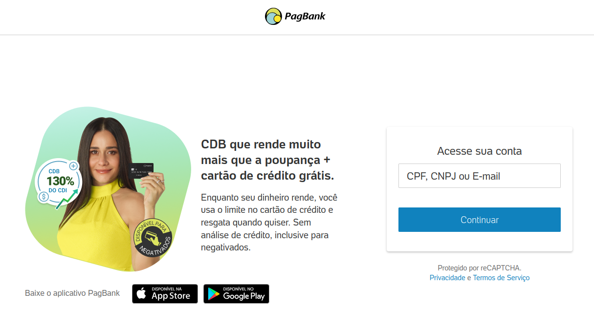 Acesse o site do PagBank em: https://www.pagbank.com.br/