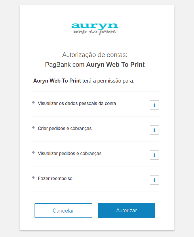 Para que a plataforma possa acessar e usar os métodos de pagamento do PagBank, você precisará conceder as permissões necessárias: