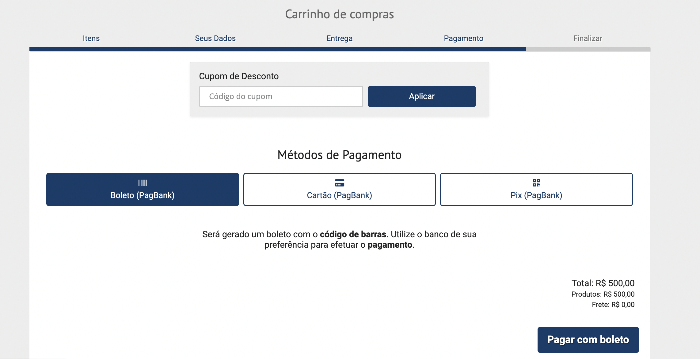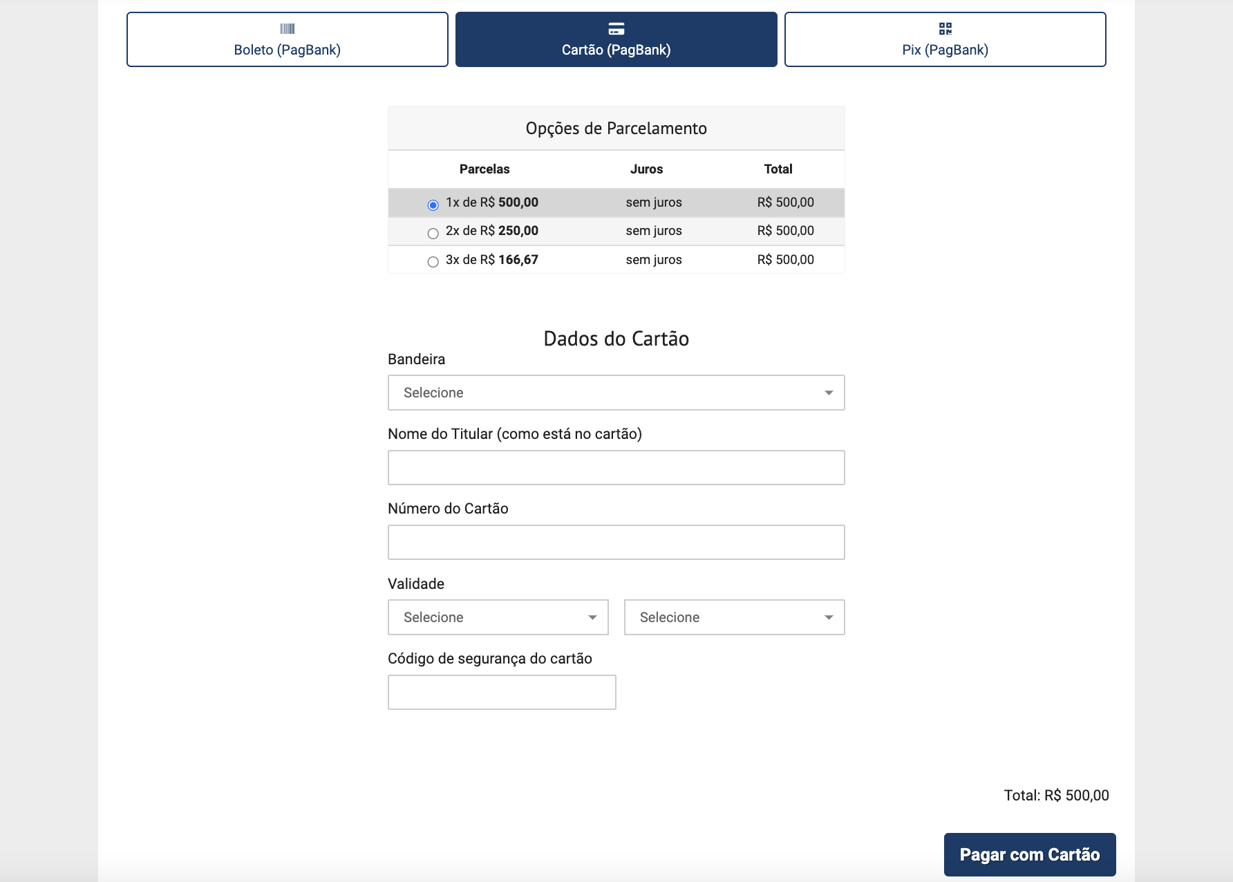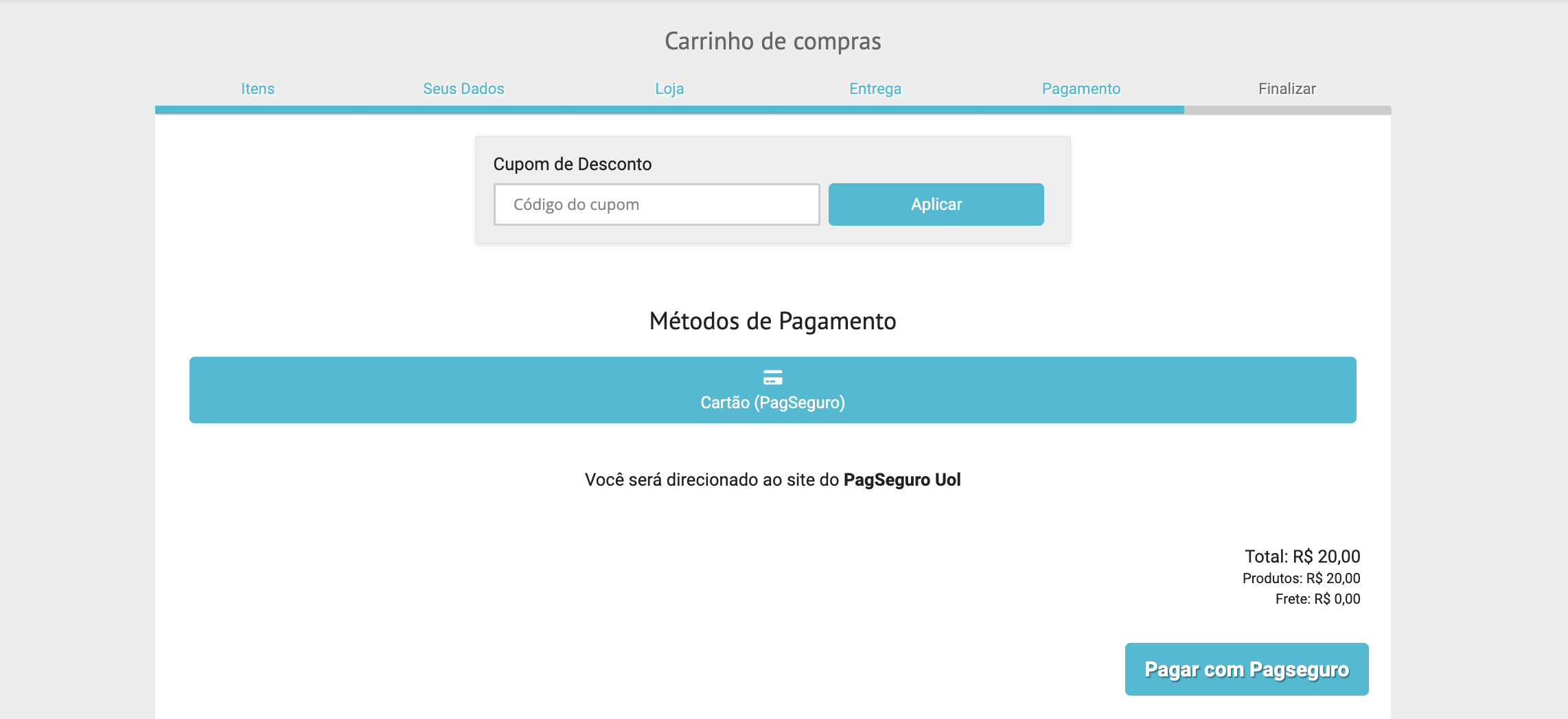 O método antigo do PagSeguro aparecia da seguinte forma: