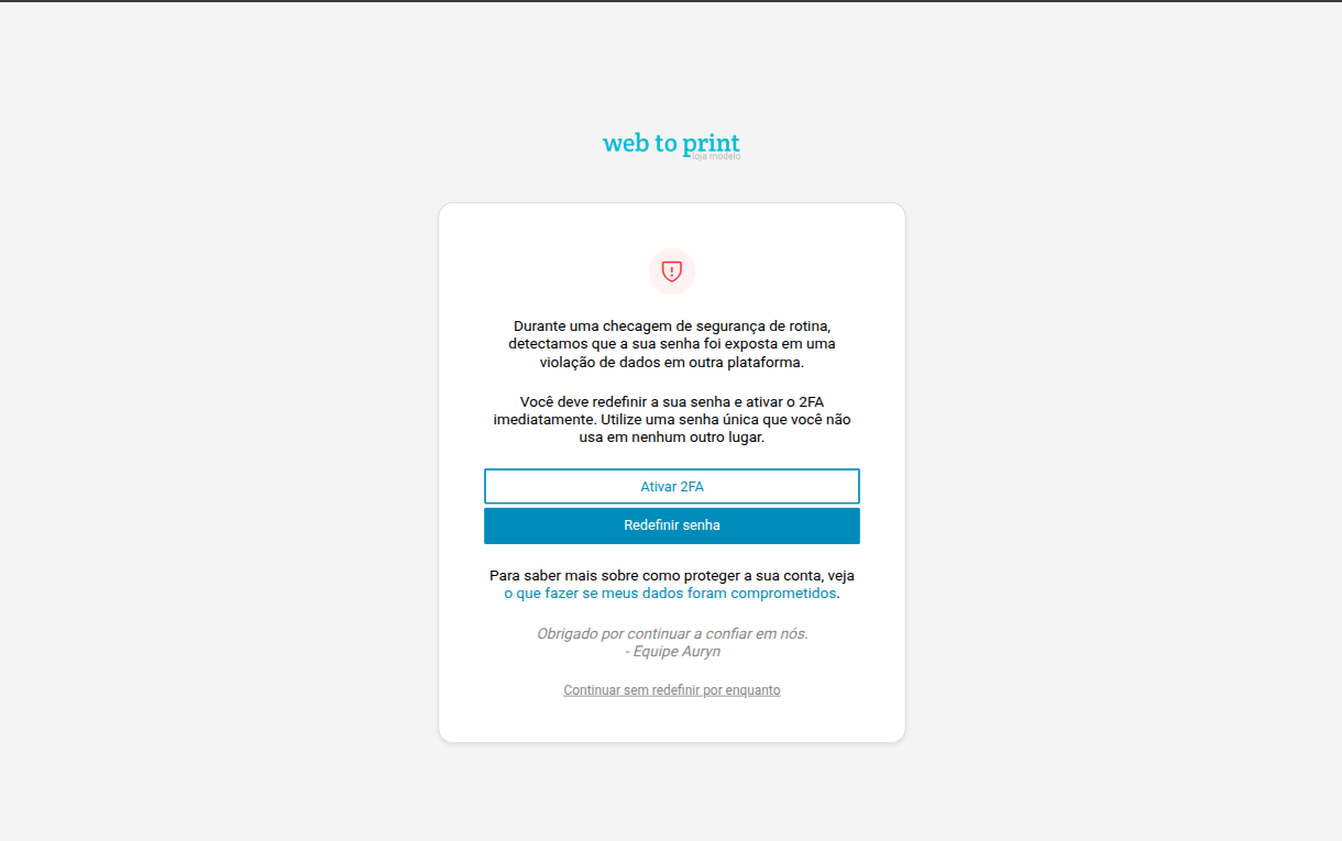 A nossa plataforma utiliza esse site para fazer uma busca cada vez que um usuário acessa a própria conta, como uma ferramenta para preservar a segurança online. Utilizamos a versão criptografada da senha para ter certeza de que ela não será exposta. Se descobrirmos que a senha de um usuário foi detectada em um vazamento de dados em outra plataforma, isso indica potenciais riscos de segurança para a conta. Nesses casos, os usuários devem tomar as providências necessárias para proteger as suas contas, como atualizar a senha e ativar a autenticação de dois fatores (2FA).