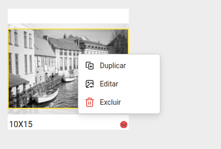 Você também pode clicar com o botão direito do mouse sobre uma imagem para acessar essas funções, rapidamente de 'duplicar imagem', 'Editar' e 'Excluir', conta com um ícone nas funções.