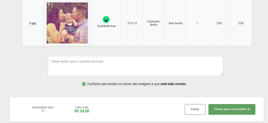 O botão “Voltar” agora permite retornar para o envio de fotos, mantendo todas as seleções salvas caso queira adicionar mais imagens.
