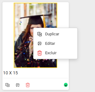 Também pode continuar clicando nos ícones ou com o botão direito do mouse sobre uma imagem para acessar essas funções de 'duplicar imagem', 'Editar' e 'Excluir'.