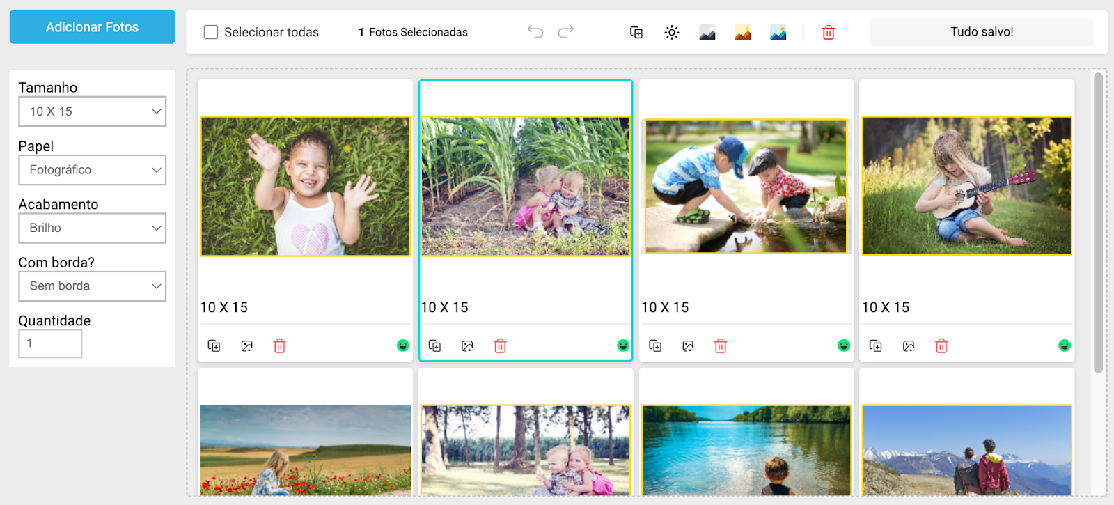Os botões de duplicar imagem; editar imagem e excluir imagem, estão visíveis por imagem.