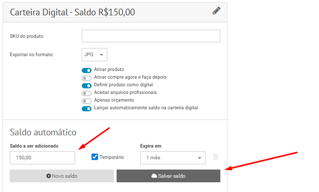 - Lançar automaticamente saldo na carteira digital