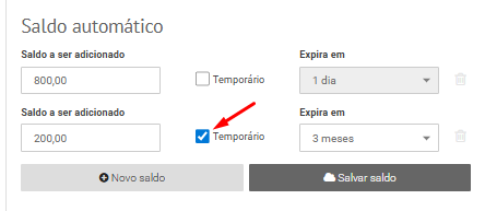- Configurar saldos temporários (com validade);