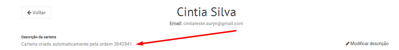 Na carteira, será exibida a mensagem: “Carteira criada automaticamente pela ordem XXX”.