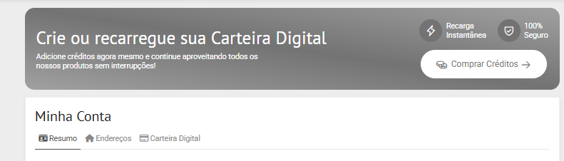 - O usuário final poderá conferir o saldo em: Minha conta > Carteira Digital.