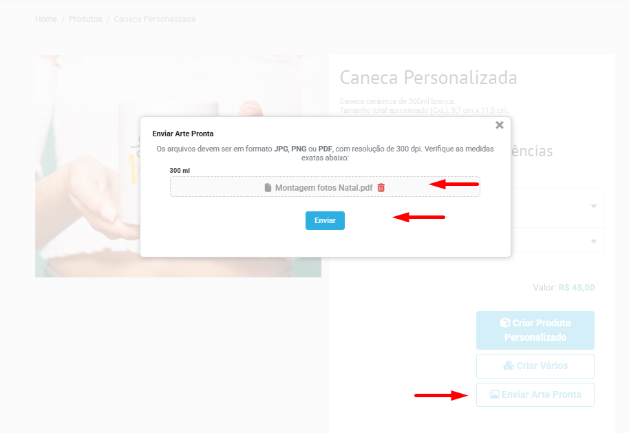 Caso você ainda não tenha essa função ativa na sua loja de "Enviar arte pronta" é só nos chamar no canal do suporte que ativaremos pra você!