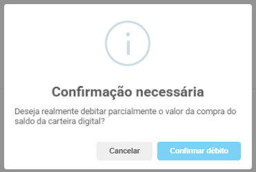 Aparecerá na tela Pedidos > Pedidos uma porcentagem paga com Carteira Digital nos casos de pagamento híbrido. Após a confirmação do pagamento parcial com saldo da carteira, o cliente é automaticamente direcionado novamente para a tela de pagamento, onde poderá escolher a forma para quitar o valor restante.