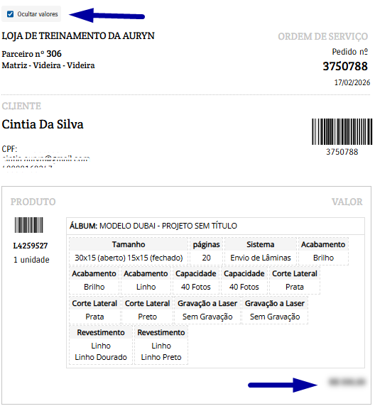 Ao ativar essa opção, os valores financeiros do pedido deixam de aparecer na Ordem de Serviço.