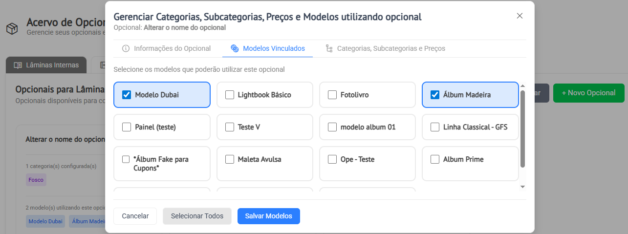Reutilizar o mesmo opcional em diferentes modelos de álbum
