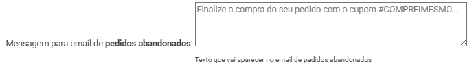 É possível adicionar uma mensagem customizada nesse e-mail em Mensagem para email de pedidos abandonados, acesse: Empresa > Preferências.