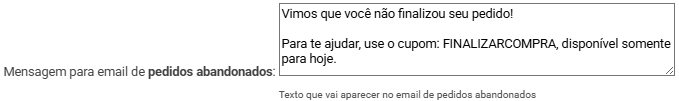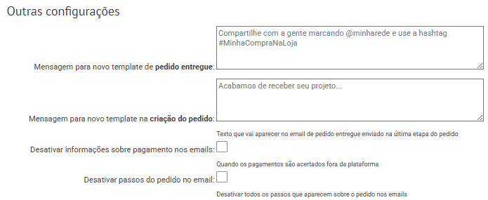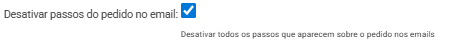 Opção: Desativar todos os passos que aparecem sobre o pedido nos e-mails
