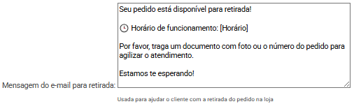 Orientar o cliente sobre como e quando retirar o pedido na loja física.