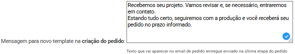 4. Mensagem para novo template na criação do pedido