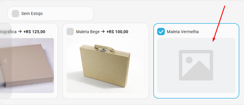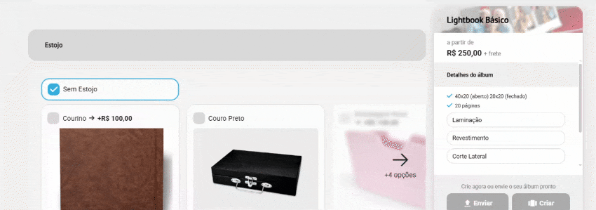 Logo no início da seção, também é possível selecionar “Sem Estojo”, caso o cliente não deseje incluir esse opcional.