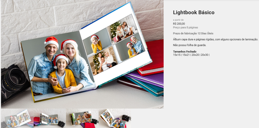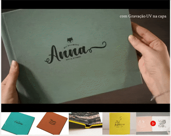 Você pode exibir vídeos dos seus modelos de álbuns, junto com as imagens do produto, deixando a apresentação ainda mais atrativa.