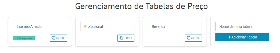As tabelas de preços permitem definir valores diferentes para o mesmo produto, de acordo com o perfil do cliente ou canal de venda.