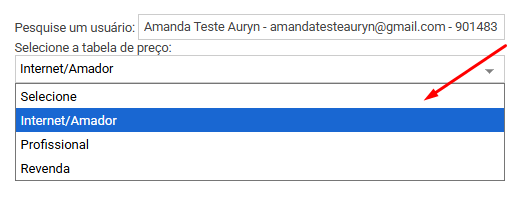 Por padrão, todos os clientes entram automaticamente na tabela padrão “Internet”. Se quiser atribuir um cliente a uma outra tabela, é muito simples: