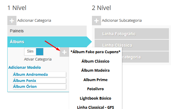 - Sempre que adicionar uma nova categoria (Fotolivros ou Fotoprodutos), é necessário ativá-la em: