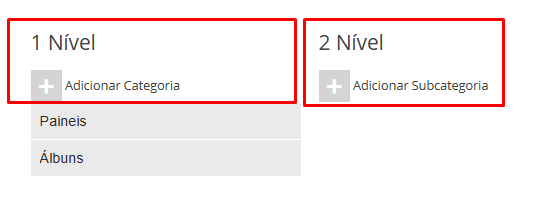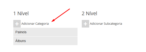 - Clique em “Adicionar categoria” As Categorias inseridas no 1º nível aparecerão na barra do menu principal da sua loja.